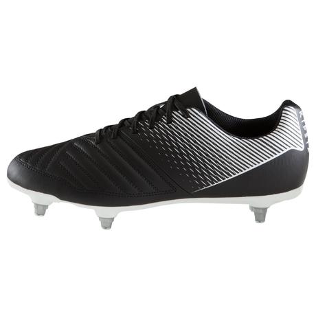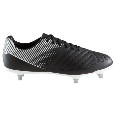 Chaussure de football adulte terrain gras Agility 100 SG noire blanche