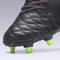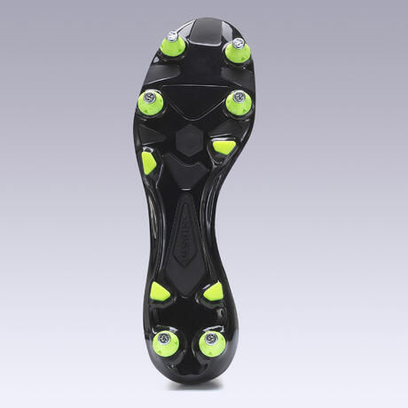 Pour assurer une excellente accroche dans toutes les phases de match ou entraînement sur terrain en herbe naturelle gras ou synthétique long, nous avons accordé une attention toute particulière à la semelle que nous avons équipé de crampons mixtes vissés et moulés.