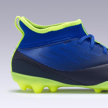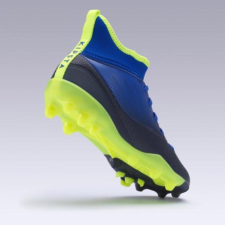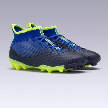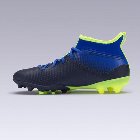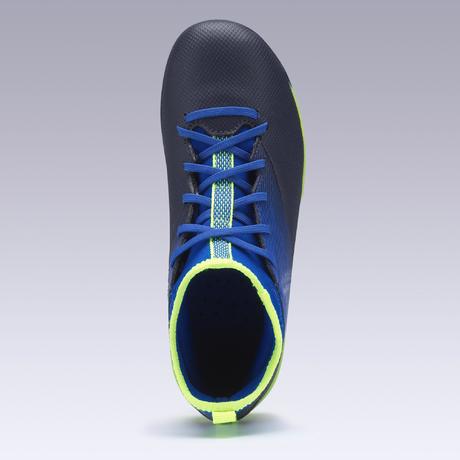 Chaussure de football enfant AGILITY 500 montante semelle MG bleu indigo et noir
