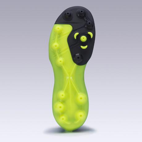 Le soin apporté par notre podologue conseil au développement de cette semelle MG pour l'Agility 500 MG a permis de la doter de crampons ronds évidés et donc plus léger. La semelle comporte un point de pivot pour faciliter les changements d'appuis et offrir ainsi une excellente accroche au jeune footballeur.