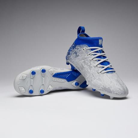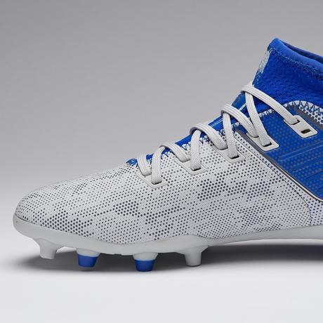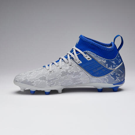 Chaussure de football enfant terrains secs Agility 900 FG JR grise et bleue