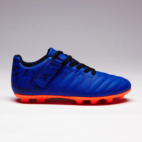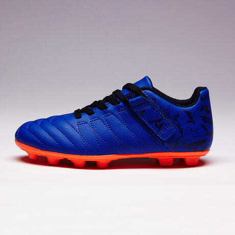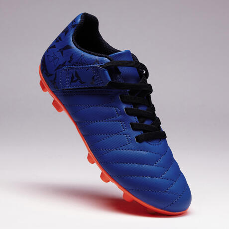 Chaussure de football à scratch enfant terrain sec Agility 140 FG bleue orange