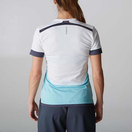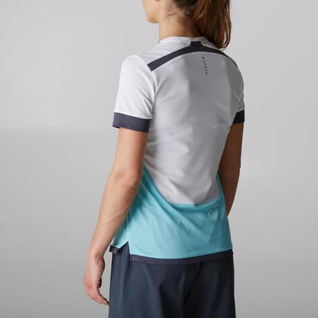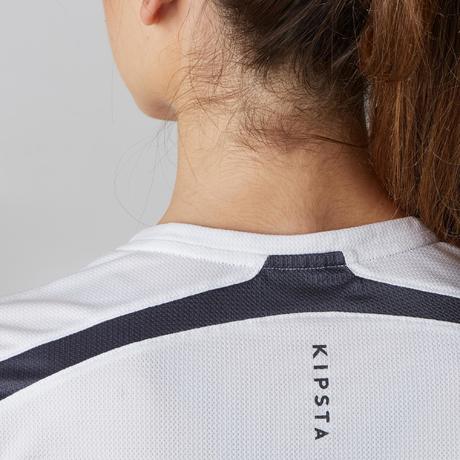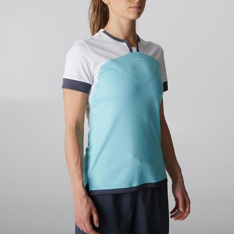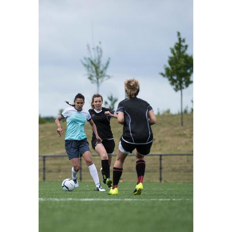 C'est en observant les joueuses de football sur leur terrain de jeu, en constatant les contraintes qu'elles rencontrent au quotidien que nous avons développé ce maillot de football F500. Il s'adresse à la joueuse confirmée, donc intensité de jeu, beaucoup de courses, beaucoup d'efforts, mais aussi agressivité, tirage de maillot. C'est donc en partant de ce constat que nous avons développé ce maillot avec un composant résistant et respirant pour que vous puissiez ne penser qu'au jeu.