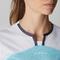 Tout l'enjeu a été de trouver l'équilibre entre un maillot dégageant de la féminité et assurant également les codes du foot. L'inspiration a été trouvée dans les robes bustiers, où la courbe et la forme valorisent la silhouette. Pour le choix des couleurs, nous avons opté pour la couleur mentholée (fraîcheur et vitalité) associée à des couleurs plus neutres (pour le côté classique) et des teintes gris bleutées.